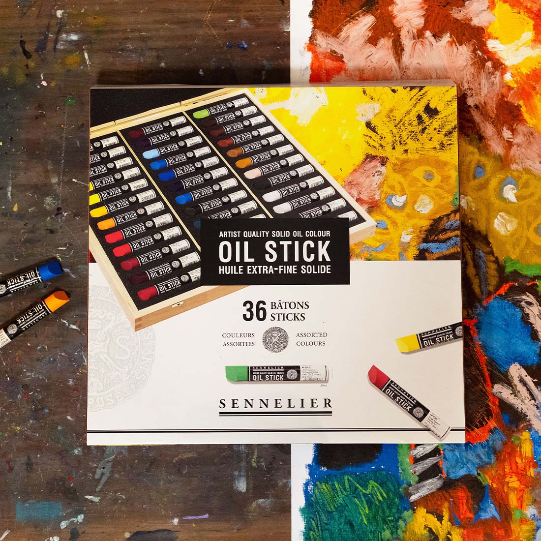 The New Sennelier Artist Oil Sticks have an enhanced formula that improves the consistency and the ‘glide’ sensation on application. These extra-fine, creamy, and easy-to-apply Artist Oil Sticks are made with Safflower Oil, selected for its non-yellowing properties, and mineral wax to give solid consistency. Now an increased range of 64 colours in the 38ml size, with 28 mono pigment colours and 27 new colours. The 96ml size has been reduced to a concise selection of 8 carefully curated colours.